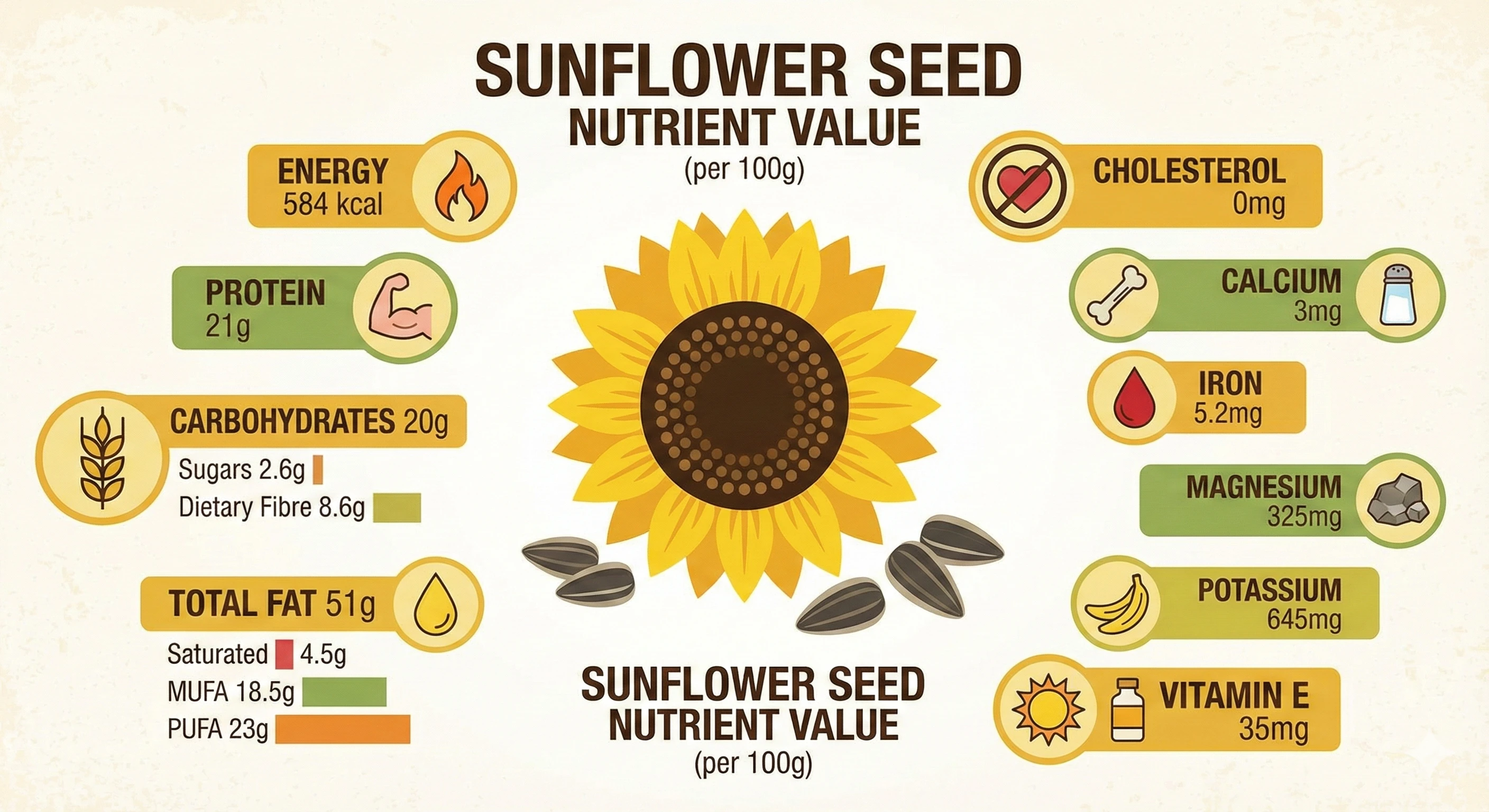 Packed with natural goodness, sunflower seeds are known as a powerful superfood. They are a rich source of protein, healthy fats, fiber, Vitamin E, and essential minerals like magnesium and iron. This makes them an excellent snack choice for fitness enthusiasts, health-conscious individuals, and anyone looking for a wholesome alternative to regular fried snacks.