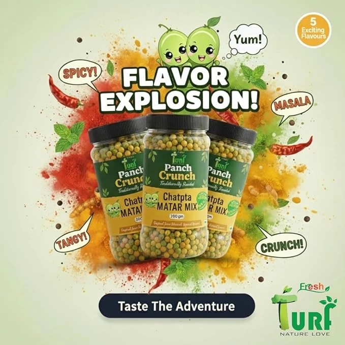 Bring home the authentic crunch and spicy goodness of Turf Fresh Panch Crunch Chatpata Matar Mix and make every snacking moment extra special!